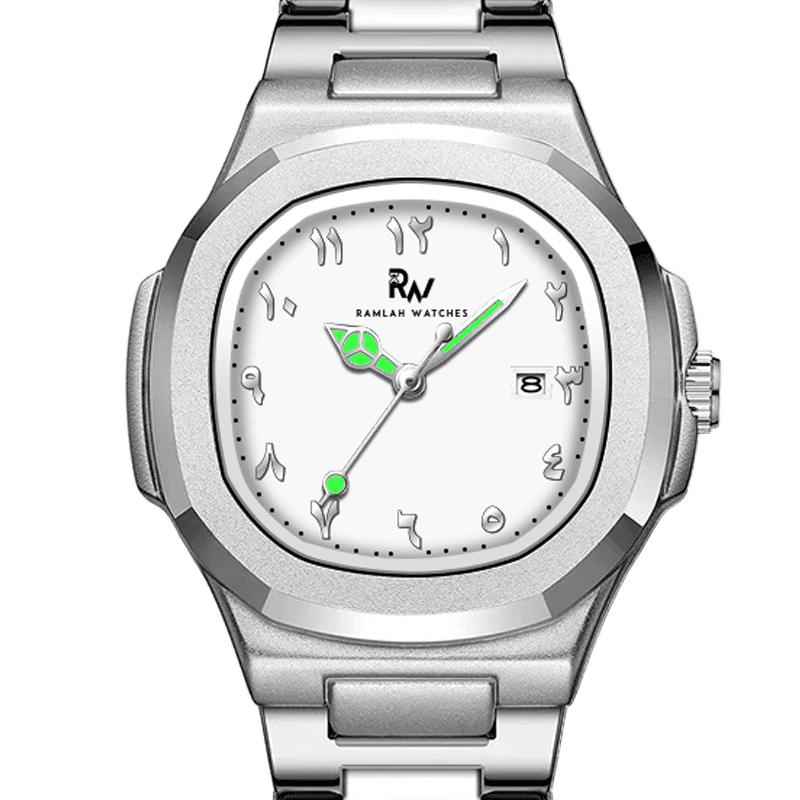 The Ramlah Al Awaal is the perfect watch for people who value both style and function. It has a white dial with big, clear Arabic numbers. The glowing hands make it easy to check the time, even in the dark. This watch is simple yet modern, and it is ideal for any event, whether it’s a formal gathering or a casual day out.